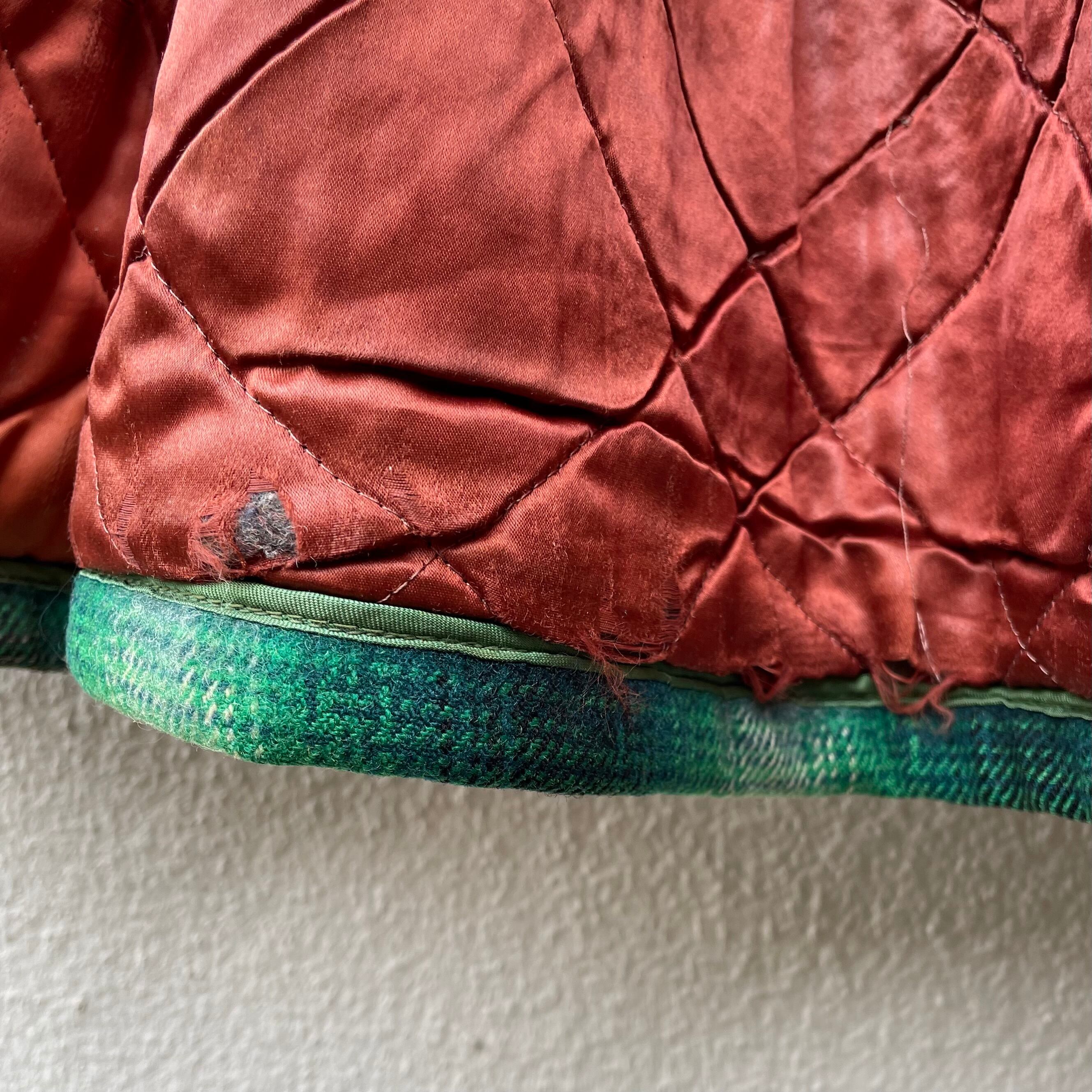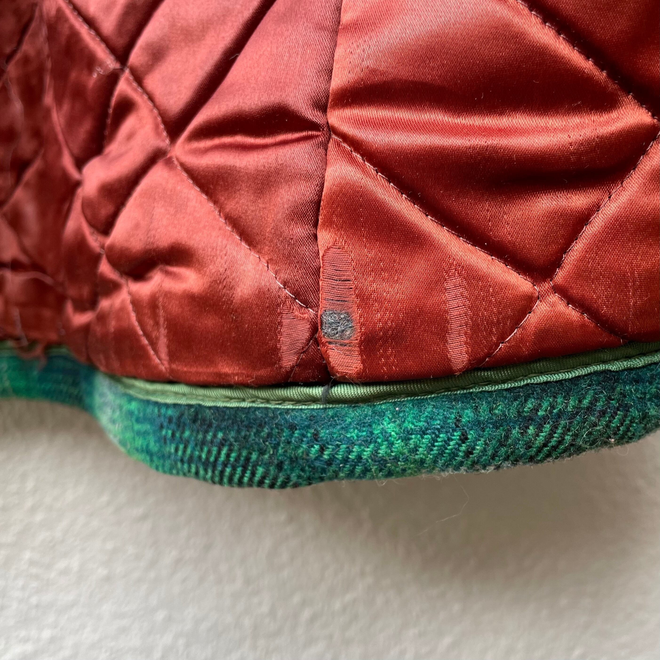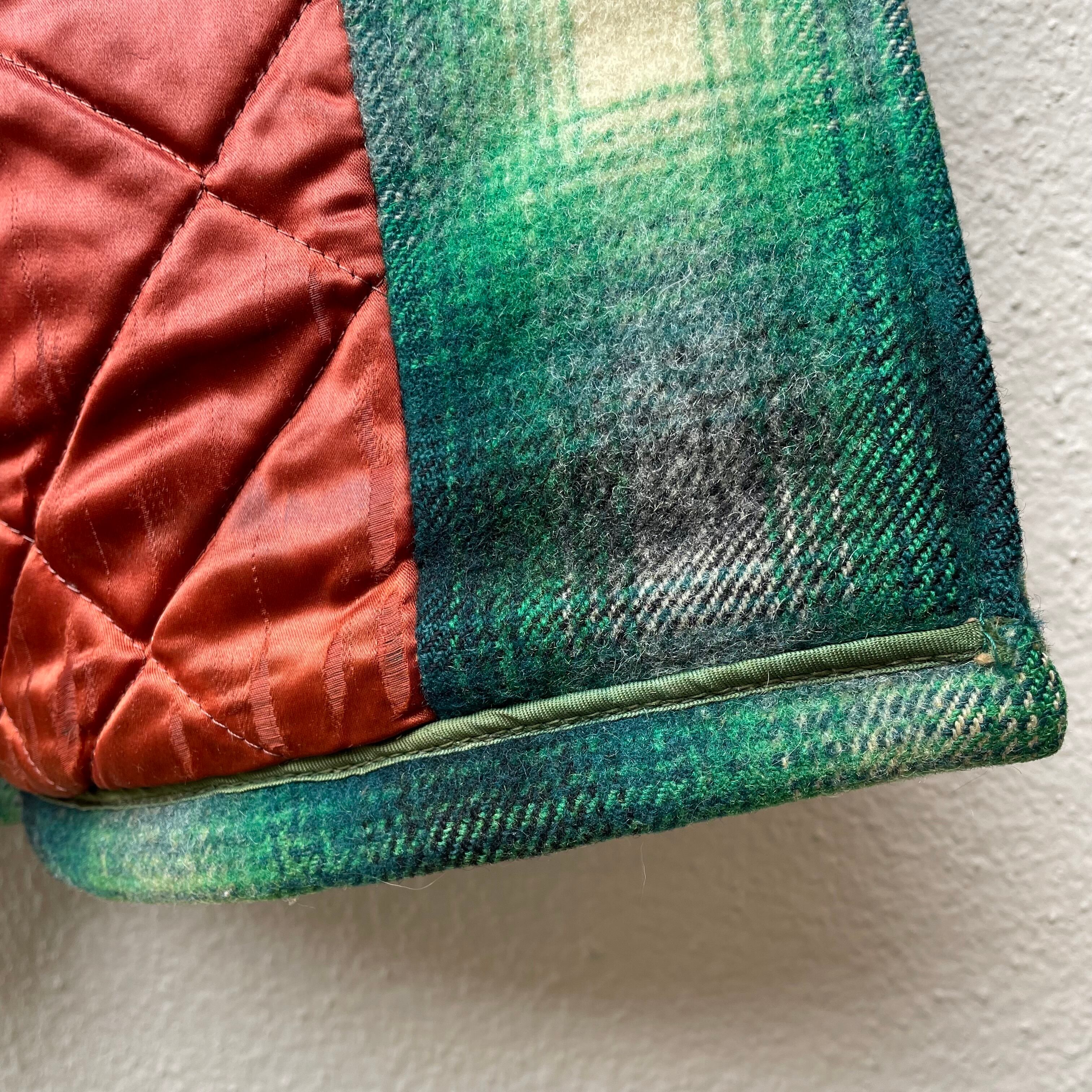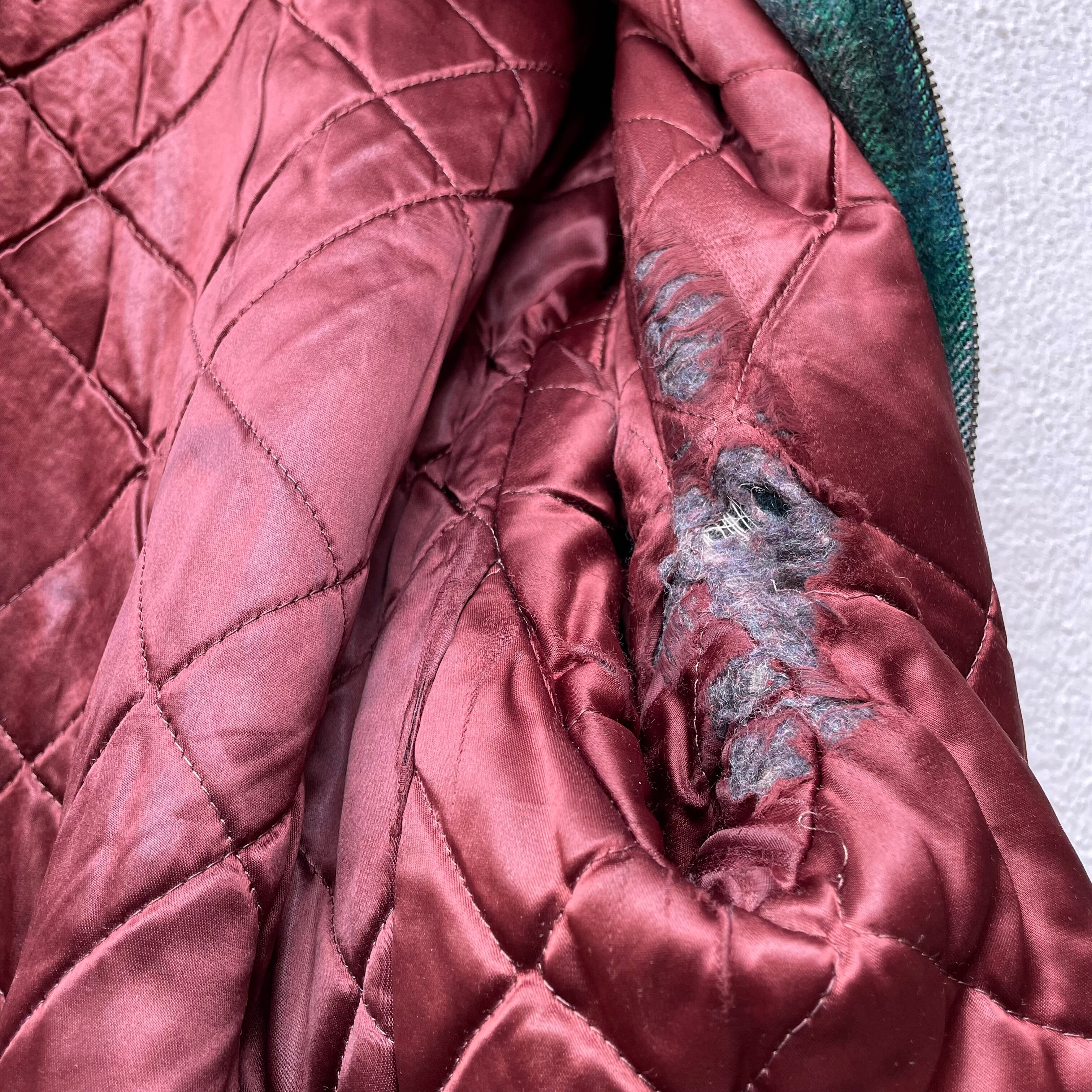 ・裏地キルティングの首周り・左脇・両袖・裾にダメージが有ります。